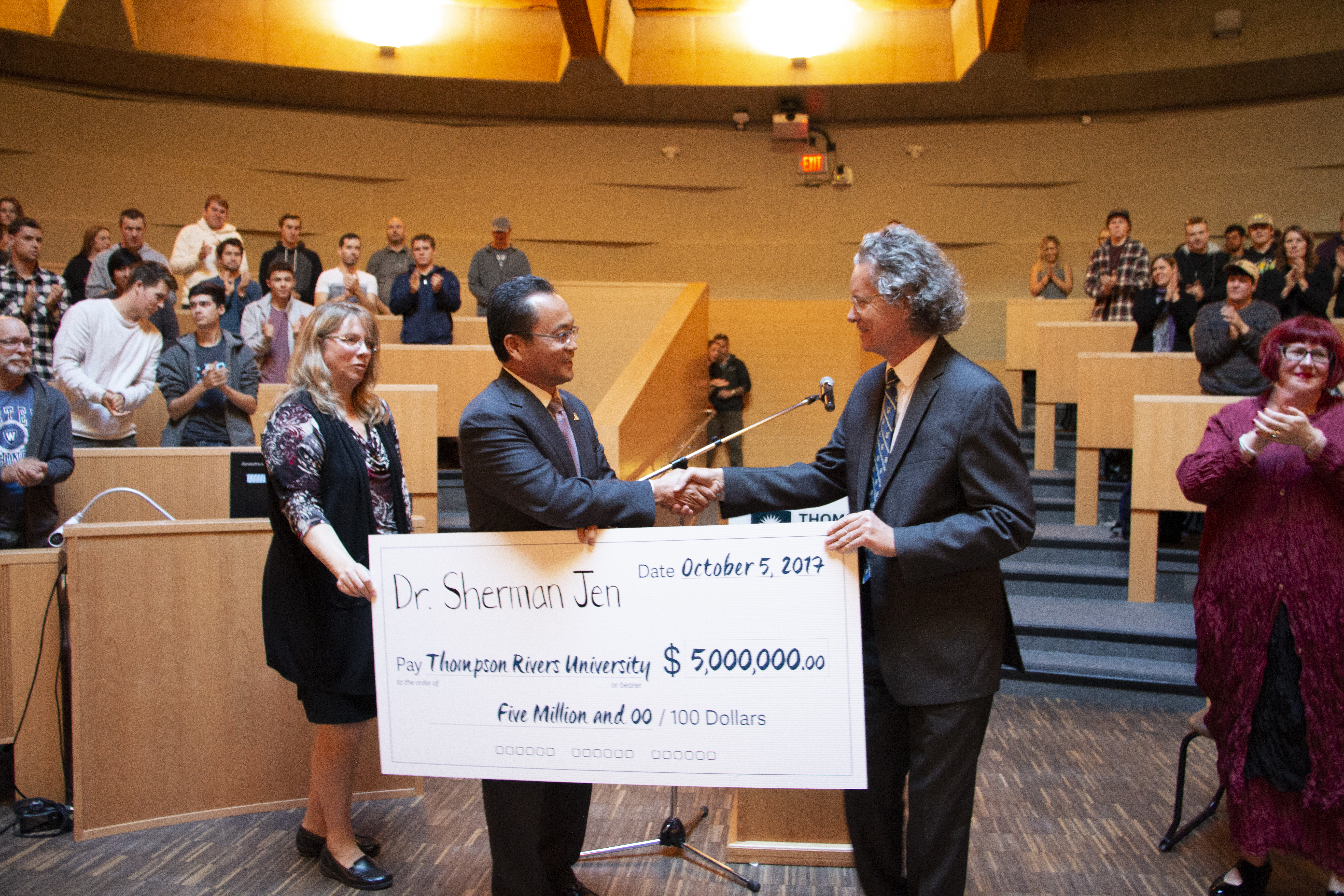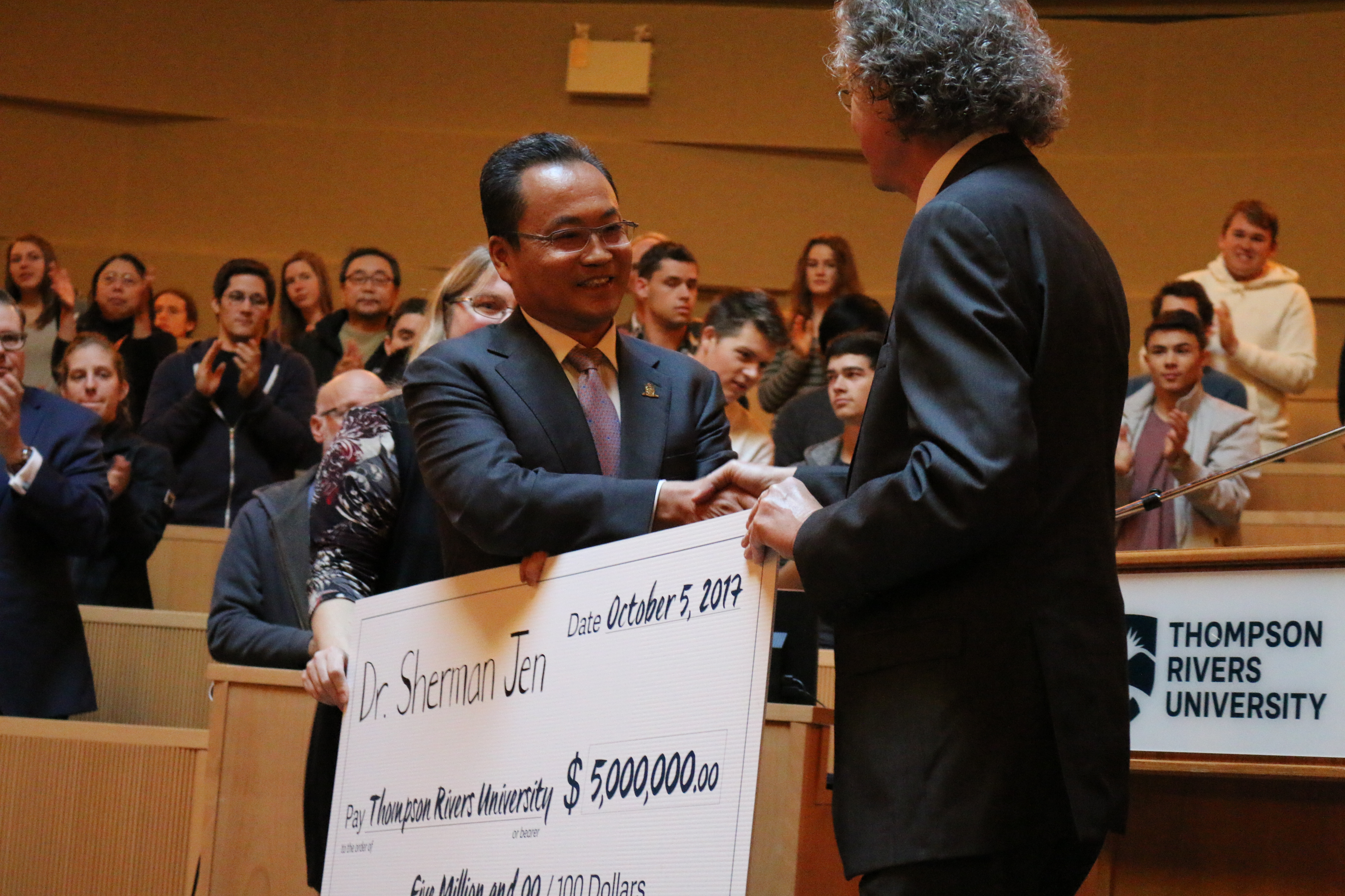 On October 5th, 2017, TRU received the largest-ever single donation in the history of the university. Dr. Sherman Jen of Maple Leaf Educational Systems gave a generous donation of $5 million. The donation was broken into different amounts for scholarships, teaching facilities, and research facilities.